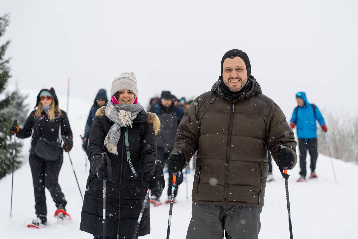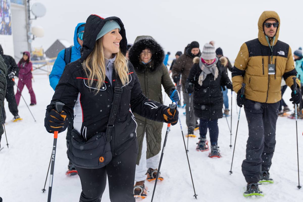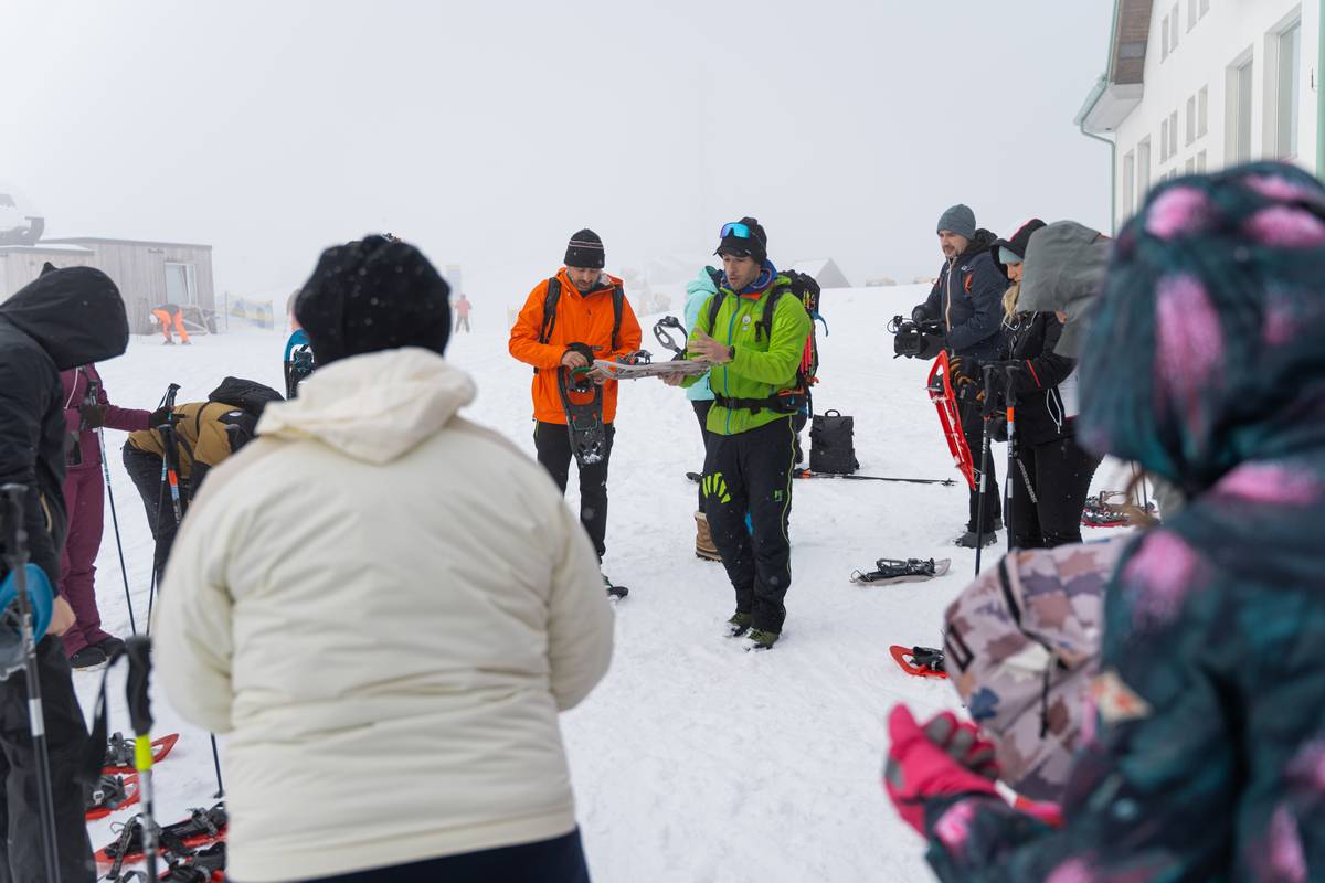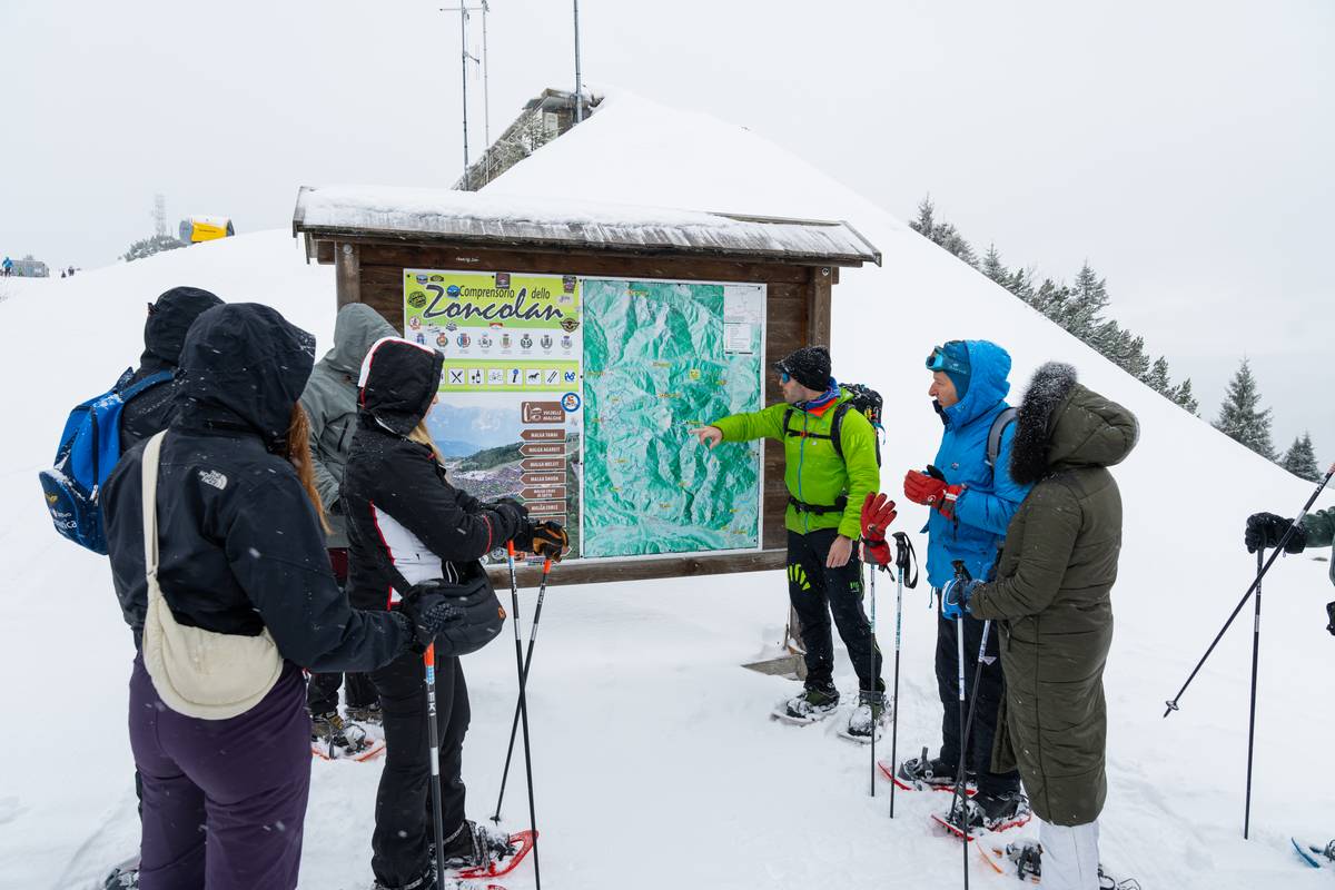 Mattinata immersi nella neve! Con le ciaspole ai piedi, avvolti da un bianco silenzioso, dalla vetta del Monte Zoncolan raggiungiamo il Rifugio Tamai camminando per circa un ora e mezza. Tra la neve soffice e la natura incontaminata, al rifugio si incontrano dolci Alpaca, curiosi osservatori di questo paesaggio incantato. Il vento fresco accarezza il volto mentre il panorama si apre sulle vette circostanti. Rientrati dopo un percorso ad anello ai 1750 metri della vetta, la discesa in funivia ci regala un ultimo sguardo mozzafiato sulla magia dell’inverno carnico.