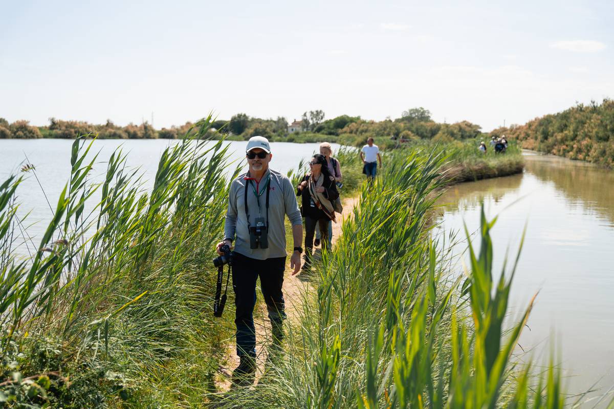 Dopo un breve trasferimento di 30 minuti, arriviamo in questa splendida riserva che alterna canneti, specchi d’acqua e sentieri tranquilli. Il percorso ad anello, facile e accessibile, si snoda tra osservatori faunistici e passerelle in legno. È il paradiso degli uccelli acquatici: fenicotteri, aironi cenerini, cavalieri d’Italia, cormorani e tante altre specie di uccelli nidificano o sostano qui durante le migrazioni.